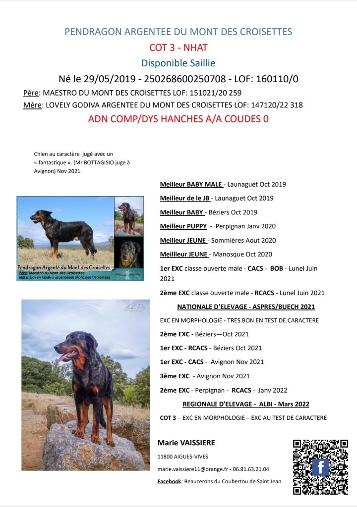 Palmares de Pendragon argenté du mont des croisettes